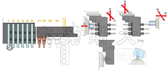 | 四、斯大走心機SB-20RtypeC在標準規格橫向鉆孔單元4軸的基礎上,可配備橫向鉆孔單元5軸型、可交換式橫向鉆孔單元5軸型/5軸高速型4種刀架臺,而可交換式橫向鉆孔單元5軸中的右側3軸,采用模塊化設計配備豐富的刀具單元,可根據工件需要自由安裝多種可交換式工具,展開多樣的復合加工。 |